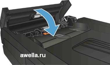 Если у устройства подачи документов возникают проблемы с подачей бумаги, например, замятие бумаги или подача нескольких листов одновременно, очистите подающие ролики и пластину устройства подачи документов.