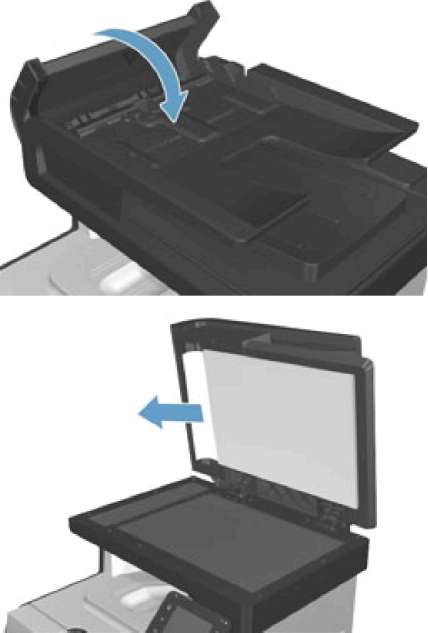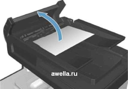 4. Откройте крышку сканера. Если замятие бумаги произошло в области крышки сканера, осторожно вытяните ее.