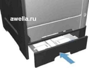 5. Нажмите на лоток для доступа к замятиям, чтобы закрыть его, и установите на место лоток 2.