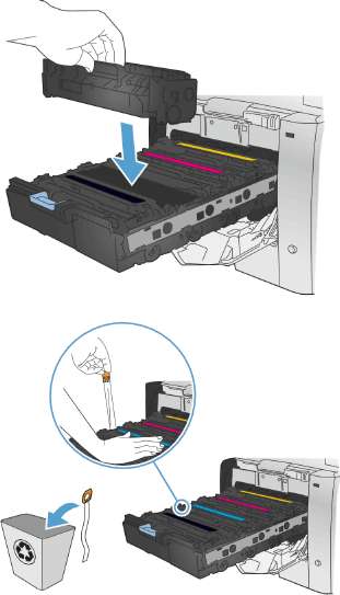8. Вытяните язычок на левой стороне для полного удаления герметизирующей ленты. Утилизируйте герметизирующую ленту.