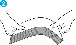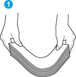 Извлеките стопку бумаги из лотка, согните, разверните ее на 180 градусов, и переверните. Не пролистывайте пачку бумаги. Положите стопку бумаги обратно в лоток.