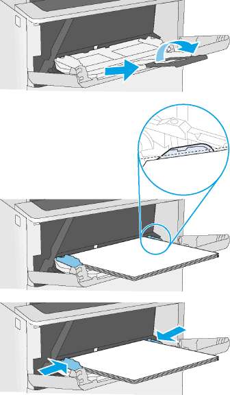 Стопка бумаги не должна превышать ограничительную линию на направляющих бумаги.