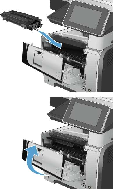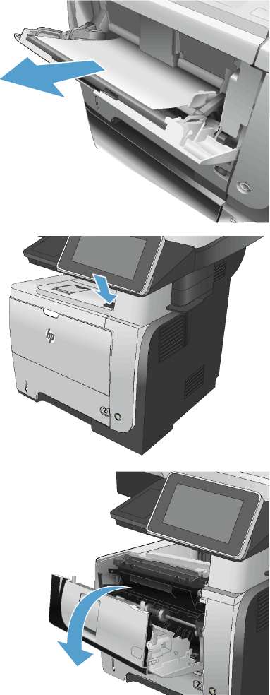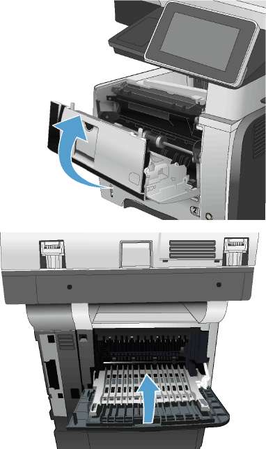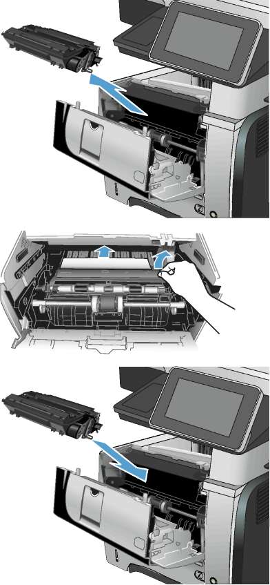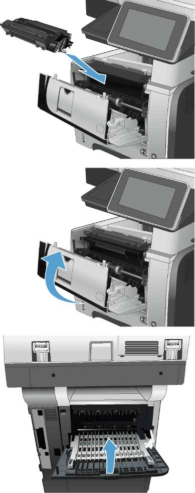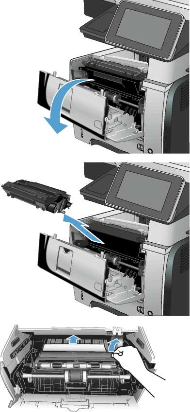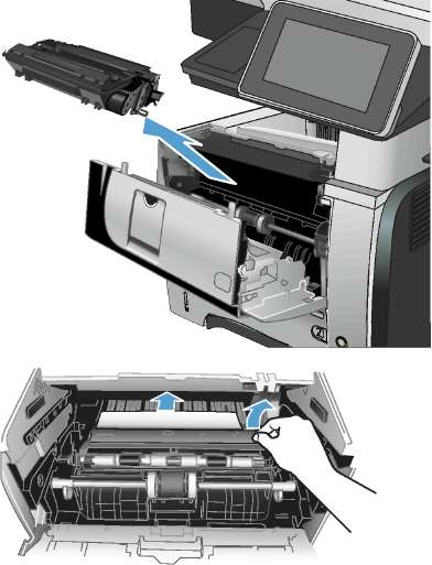 1. Откройте устройство и извлеките замятую бумагу из тракта прохождения.