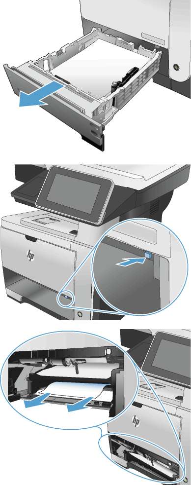 • Убедитесь, что в тракте подачи бумаги нет кусочков бумаги, скрепок, зажимов или других посторонних предметов.