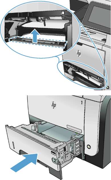 4. Убедитесь, что лоток не переполнен. Если лоток переполнен, извлеките стопку бумаги из лотка, выровняйте стопку и положите часть бумаги обратно в лоток.
