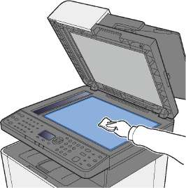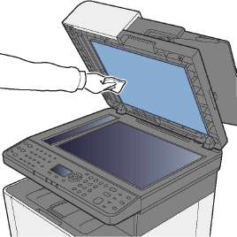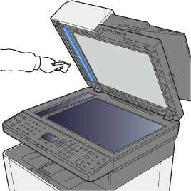 Протрите внутреннюю сторону автоподатчика оригиналов и стекло оригинала мягкой тканью, смоченной спиртом или слабым моющим средством.