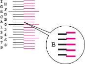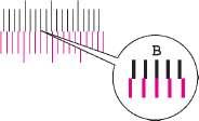 1 Найдите на каждой диаграмме 2 наиболее точно совпадающие линии. Если это нулевая позиция, совмещение для данного цвета не требуется. На рисунке наиболее подходящее значение — В.