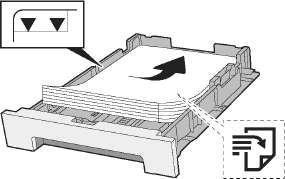 • Убедитесь в том, что высота стопки загруженной бумаги не превышает указанный уровень (см. рисунок выше).