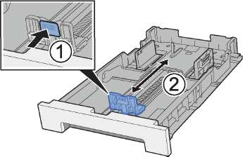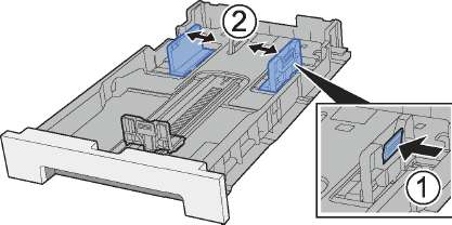 Отрегулируйте положение направляющих ширины бумаги, расположенных на левой и правой сторонах кассеты 2.