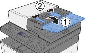 Откройте лоток для оригиналов и отрегулируйте положение направляющих ширины оригиналов.