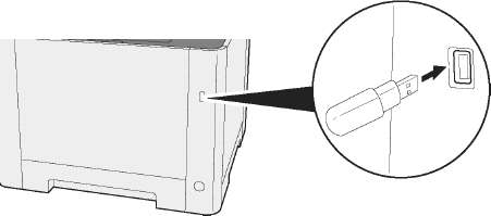 Вставьте съемный носитель USB непосредственно в аппарат. Это поможет легко и быстро распечатать файлы, сохраненные на съемном носителе USB, без использования компьютера.