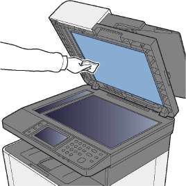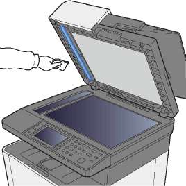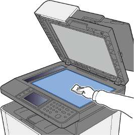 Протрите автоподатчик оригиналов и стекло оригинала изнутри мягкой тканью, смоченной спиртом или слабым моющим средством.