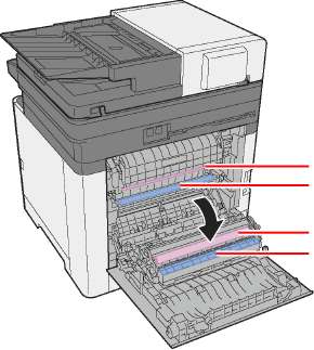Извлечение замятой бумаги из-за задней крышки 1
