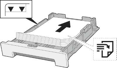 • Убедитесь в том, что высота стопки загруженной бумаги не превышает указанный уровень (см. рисунок выше).
