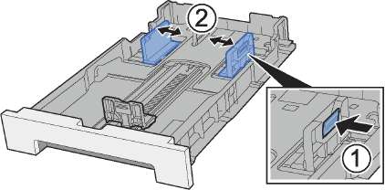 Отрегулируйте положение направляющих ширины бумаги, расположенных на левой и правой сторонах кассеты 2.