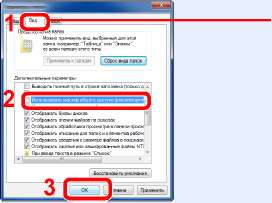 В Windows XP перейдите на вкладку [Вид] и снимите флажок [Использовать простой общий доступ к файлам (рекомендуется)] в разделе "Дополнительные параметры".