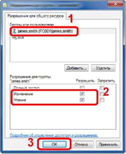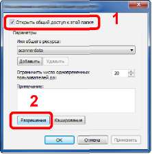1 Установите флажок [Открыть общий доступ к этой папке] и нажмите кнопку [Разрешения].