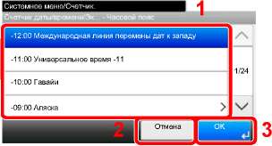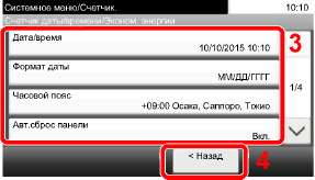 Задайте дату и время для местности, в которой используется аппарат. При выполнении отправки по электронной почте настроенные здесь дата и время будут отображаться в заголовке.