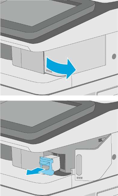 2. Откройте дверцу модуля сбора тонера в верхней левой части принтера.