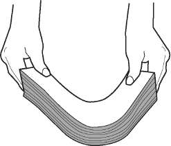 При перелистывании бумаги создается статическое электричество. Вместо перелистывания согните стопку бумаги в форме буквы "U", держа ее за оба края. Затем распрямите стопку и согните ее в обратном направлении в форме буквы "U". Затем повторите данную процедуру еще раз, держа стопку за боковые стороны. Этот процесс освобождает отдельные листы бумаги от накопленного статического электричества. Выровняйте стопку бумаги по краю стола перед его возвратом в лоток.