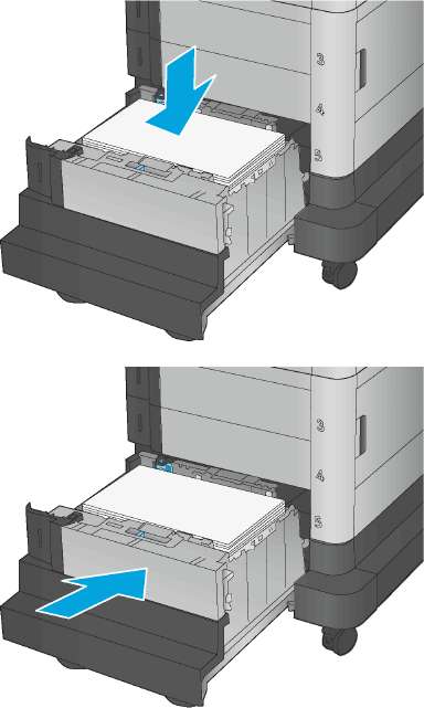 Загрузка входного лотка повышенной емкости на 1500 листов на принтере HP Color LaserJet Enterprise M651