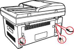 1. Выключите основной переключатель питания и отсоедините кабель питания, кабель USB, телефонный и сетевой кабель.