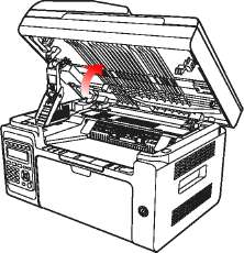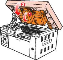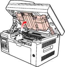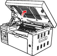 1. Отключите принтер и поднимите платформу сканирования, пока она не заблокируется.