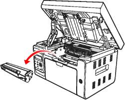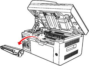 • Положите извлеченный на лист бумаги, чтобы из него случайно не высыпался тонер.