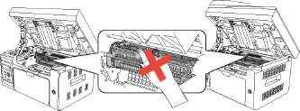 • При установке не касайтесь поверхности фоточувствительного барабана, чтобы не поцарапать ее.