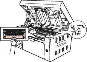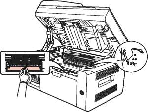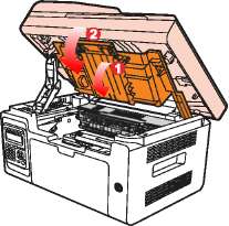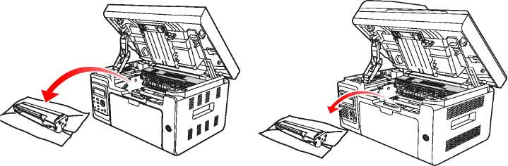 • На поверхности может осесть тонер. Аккуратно уберите его, чтобы не просыпать.