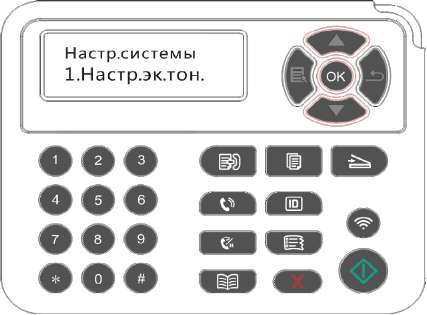 3) Hажать клавиши со стрелками опцию "вверх" или "вниз" выберите "Настр.эк.тон.", нажмите кнопку "OK", чтобы включить/выключить режим экономии тонера.