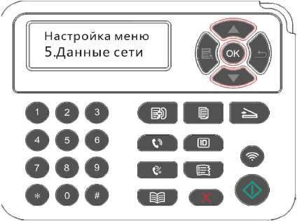 2) Hажми кнопку направления "вверх" или "вниз", выбирай выбор "Данные сети", нажми кнопку "OK", для того, чтобы просмотрять "установление проводной сети", "установоление беспроводной сети", "Wi-Fi Direct".