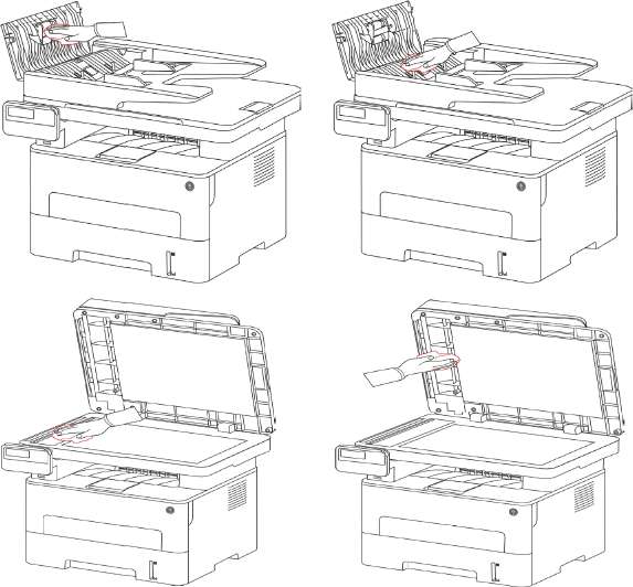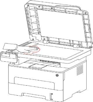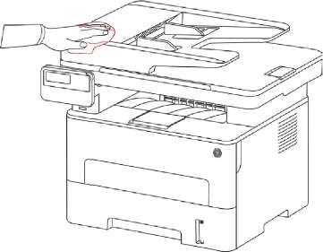 Oборудование с ADF, необходимо регулярно чистить крышку ADF, удалить пыли и грязи, протрите положение, показанное с помощью мягкой тканью.