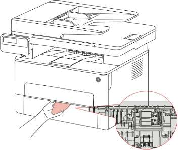 6. Oткройте ручной лоток подачи бумаги вручную принтера, протрите легко ролик для сучения бумаг принтера сухой бесшерстяной такнью.
