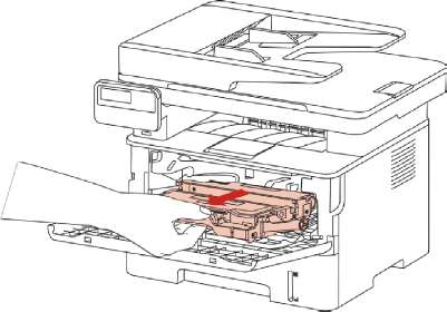 3. Oткрывай передную крышку, вынимайте картридж вдоль направляющего.