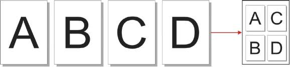Через несколько страниц в одном листе, два или четыре оригинала может копирование в одном листе, поддержка копирование ADF и на стекле экспонирования.