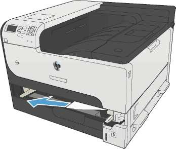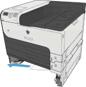 Не вытаскивайте бумагу с силой, если она не выходит достаточно легко. Если бумага застряла в лотке, попробуйте удалить ее через лоток сверху (если он установлен) или через область картриджа с тонером.