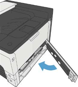 2. Если не удалось устранить замятие с помощью дверцы доступа с правой стороны, вытяните лоток из устройства.