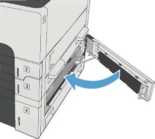 1. Откройте дверцу доступа с правой стороны и дверцу для доступа к замятой бумаге лотка на 500 листов.