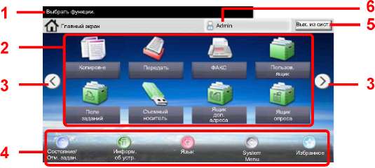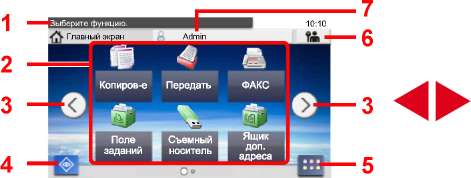Данный экран отображается после нажатия клавиши [Главный экран] на панели управления. Соответствующий экран отображается после прикосновения к ярлыку.