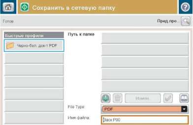 Системный администратор может воспользоваться встроенным веб-сервером HP для конфигурации предписанных папок Быстрые профили, либо пользователь имеет право указать путь к другой сетевой папке.
