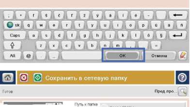 2. На главном экране панели управления устройства нажмите кнопку Сохранить в сетевую папку.
