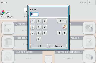 3. Для указания количества копий коснитесь поля Копии, чтобы открыть клавиатуру.