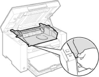 Возьмитесь за ручку на передней левой стороне крышки тонера.