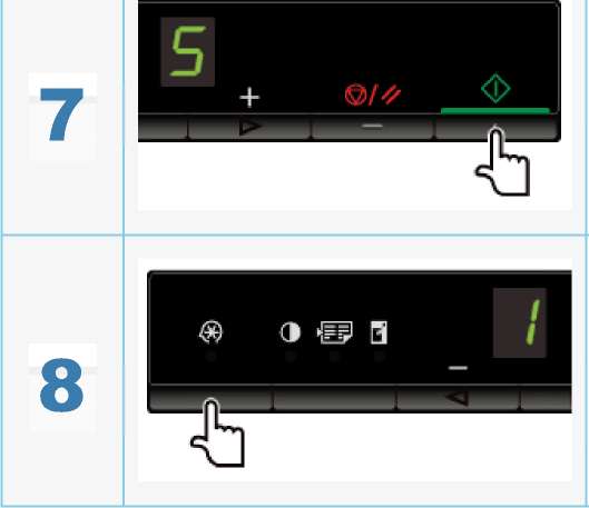 После этого загорится "F" и начнет мигать (кнопка настройки копирования).