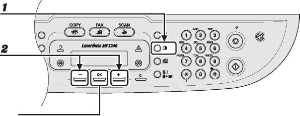 Клавишей настройте плотность копии, затем нажмите клавишу [OK].