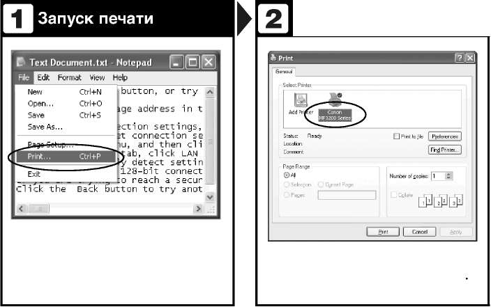 Для печати документа с компьютера выполните следующие операции. Убедитесь, что установлен драйвер принтера.