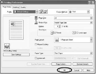 Щелкните [Preferences] (Настройка) или [Properties] (Свойства), чтобы открыть диалоговое окно. После завершения щелкните [OK].