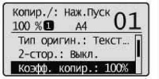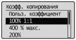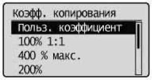 С помощью клавиш выберите пункт <Коэфф. копирования>, затем нажмите [ОК].