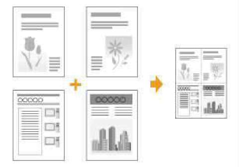 Уменьшение четырехстраничных документов для размещения на одном листе бумаги.